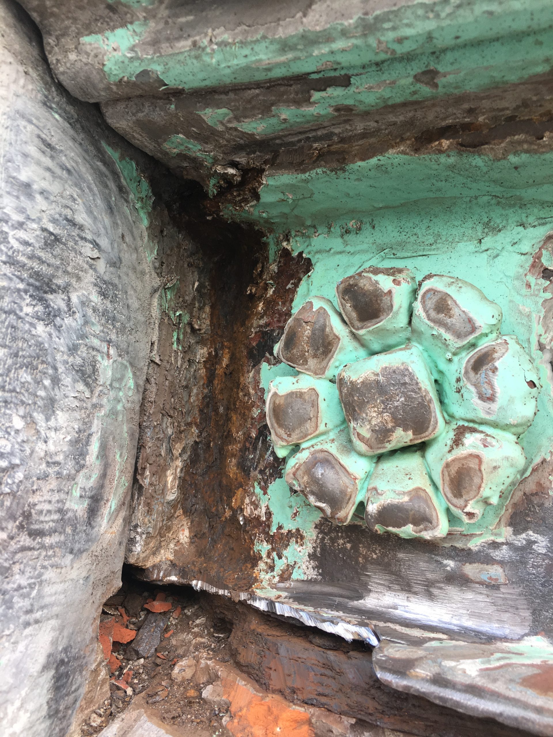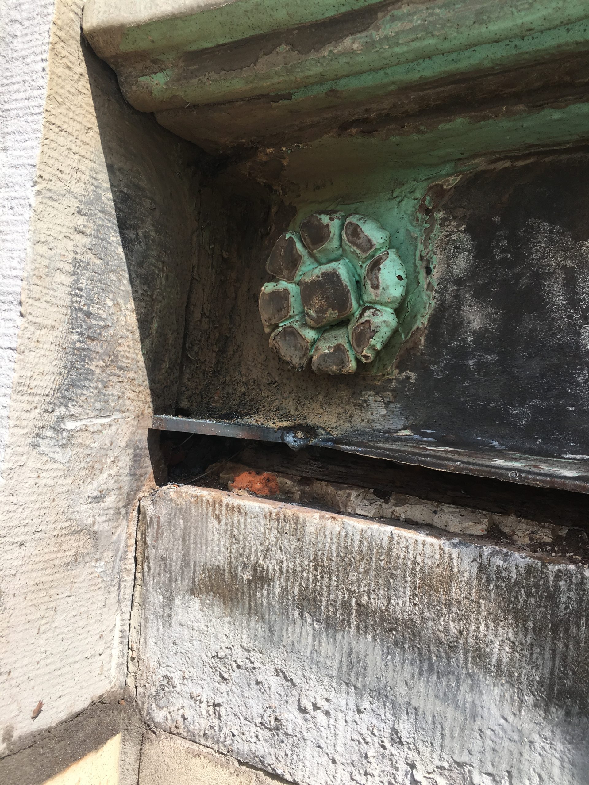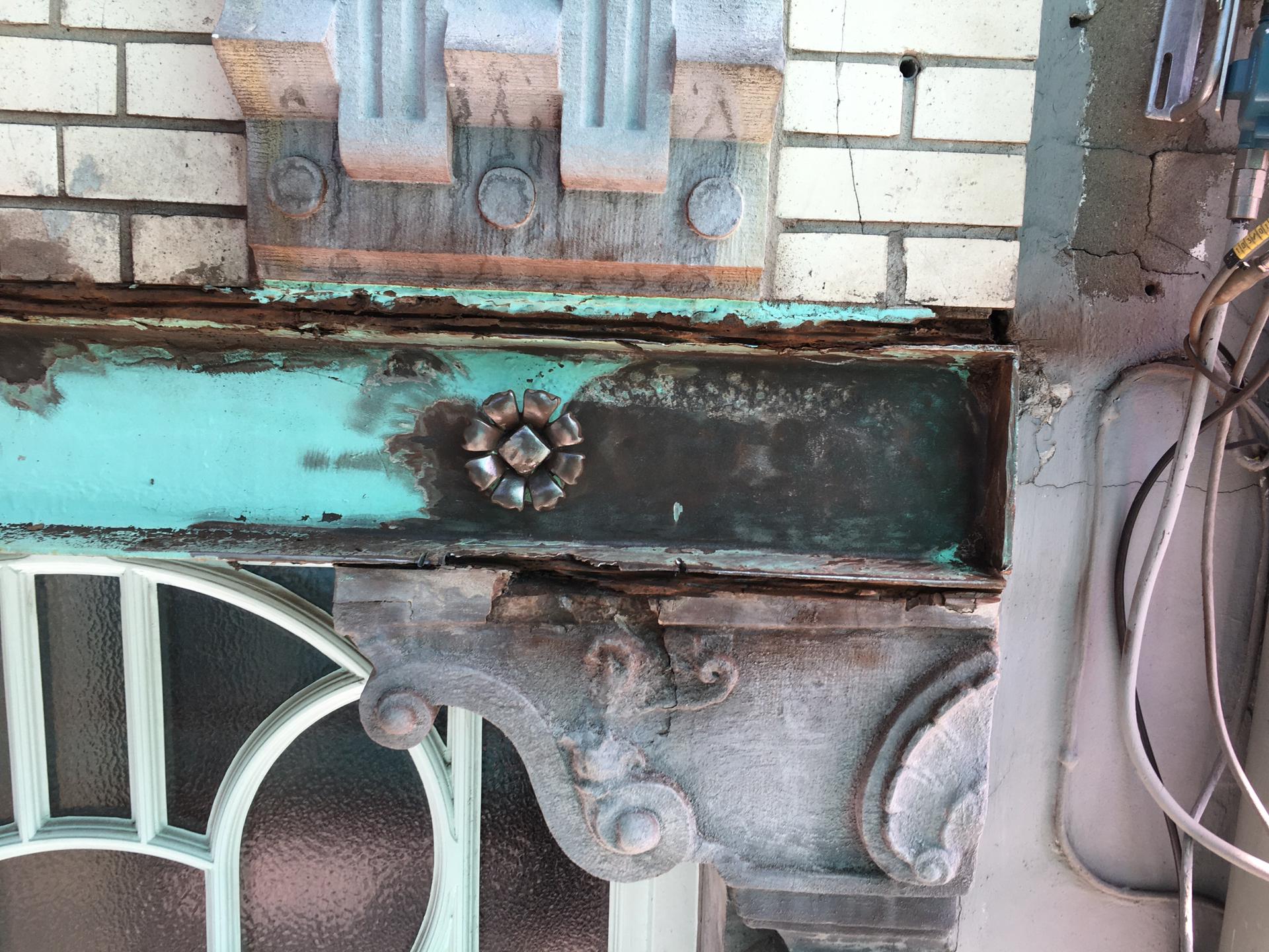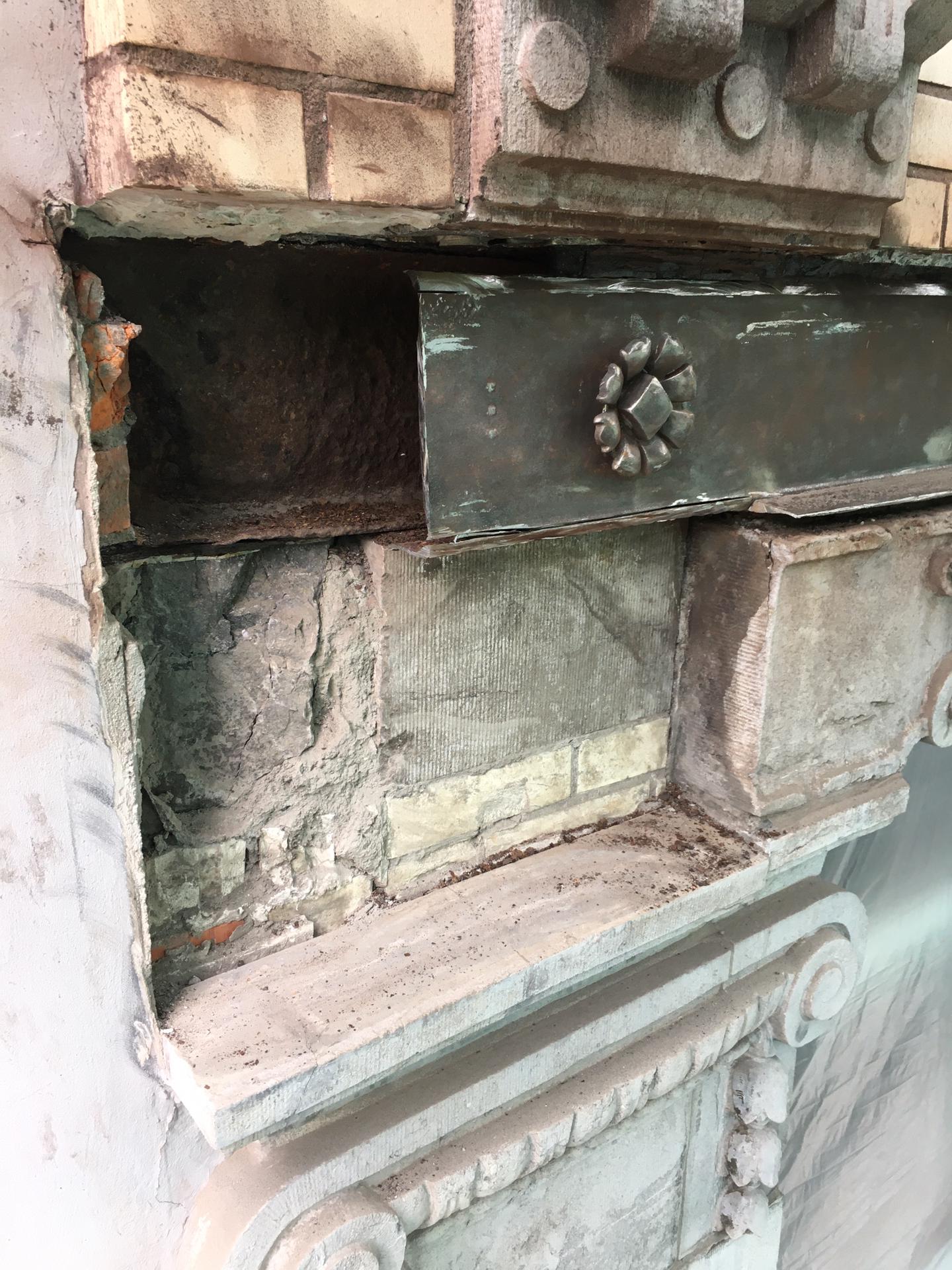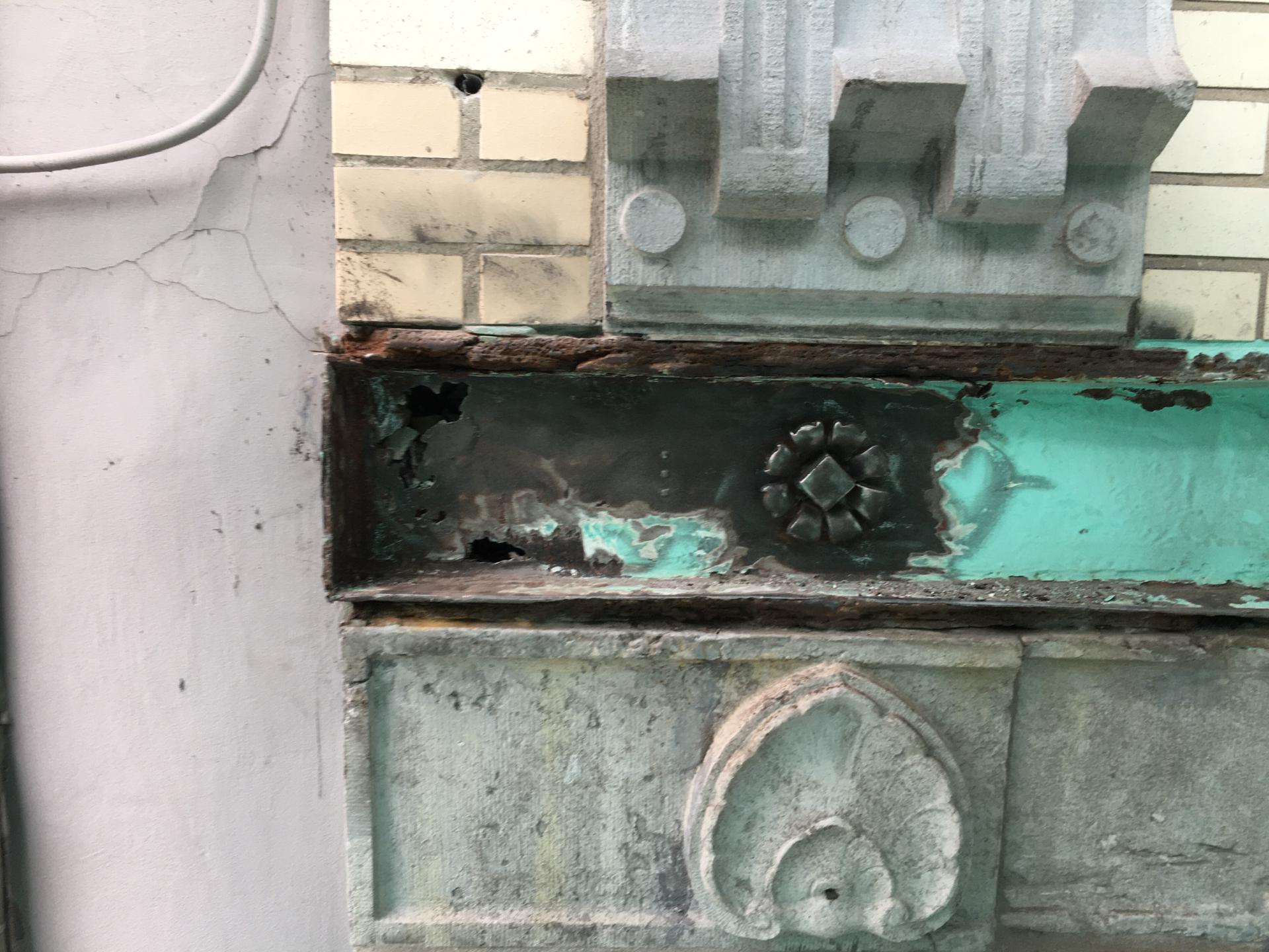 Cast iron is one of the most expensive materials in historic facades. In Art Deco architecure it appaers in balconies, railings, decorative panels and ornamental details. Its strenght allows for finely detailed casting, while its visual weight adds character and depth to the facade. Restoration requires careful assessment: cracks, corrosion and missing elements must be treated with respect for the original casting techniques. Where necessary, damaged parts are repaired or accurately reproduced to preserve both structure and expression.