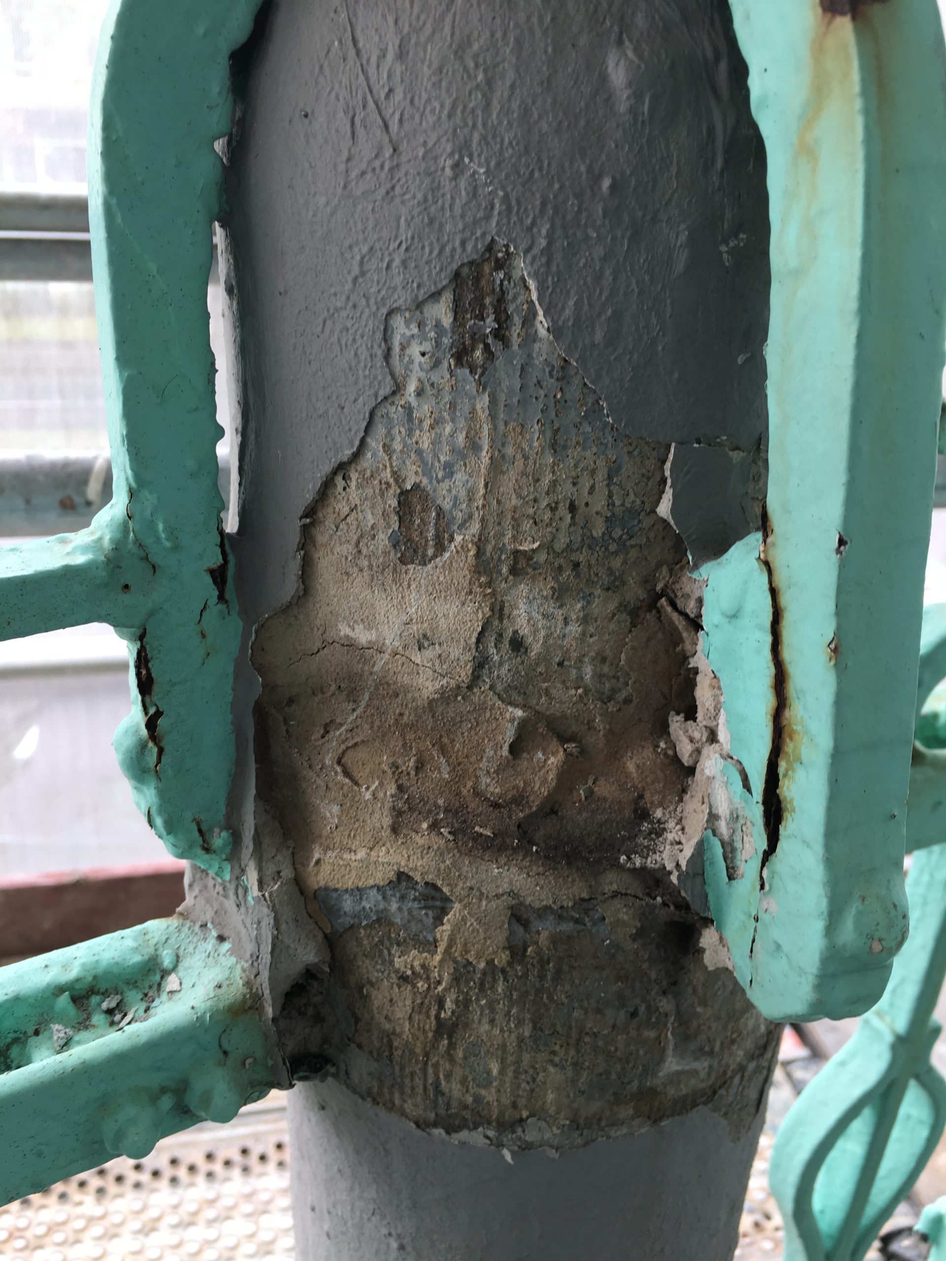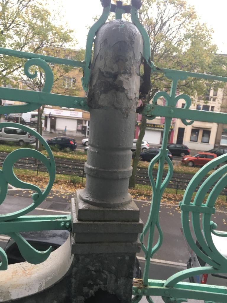 Wrought iron is defined by craftsmanship. Unlike cast iron, it is shaped by hand, bent, hammered and often riveted or bolted into unique forms. It is commonly found in railings, window guards, gates and smaller decorative elements. Each piece carries subtle irregularities that give it life and authenticity. Not every anti-corrosion treatment is suitable for wrought iron. Hot-dip galvanizing is not recommended due to the high carbon content of the material, which can cause structural stress, deformation and long term damage . And ironically, faster corrosion. Metalizing (thermal spraying of zinc) is the preferred method: zinc is sprayed onto the surface, providing corrosion protection while preserving the integrity and detail of the original ironwork. Restoration focuses on preserving original material wherever possible, repairing joints, removing corrosion with care, and applying protective systems that respect both material and craftmanship.