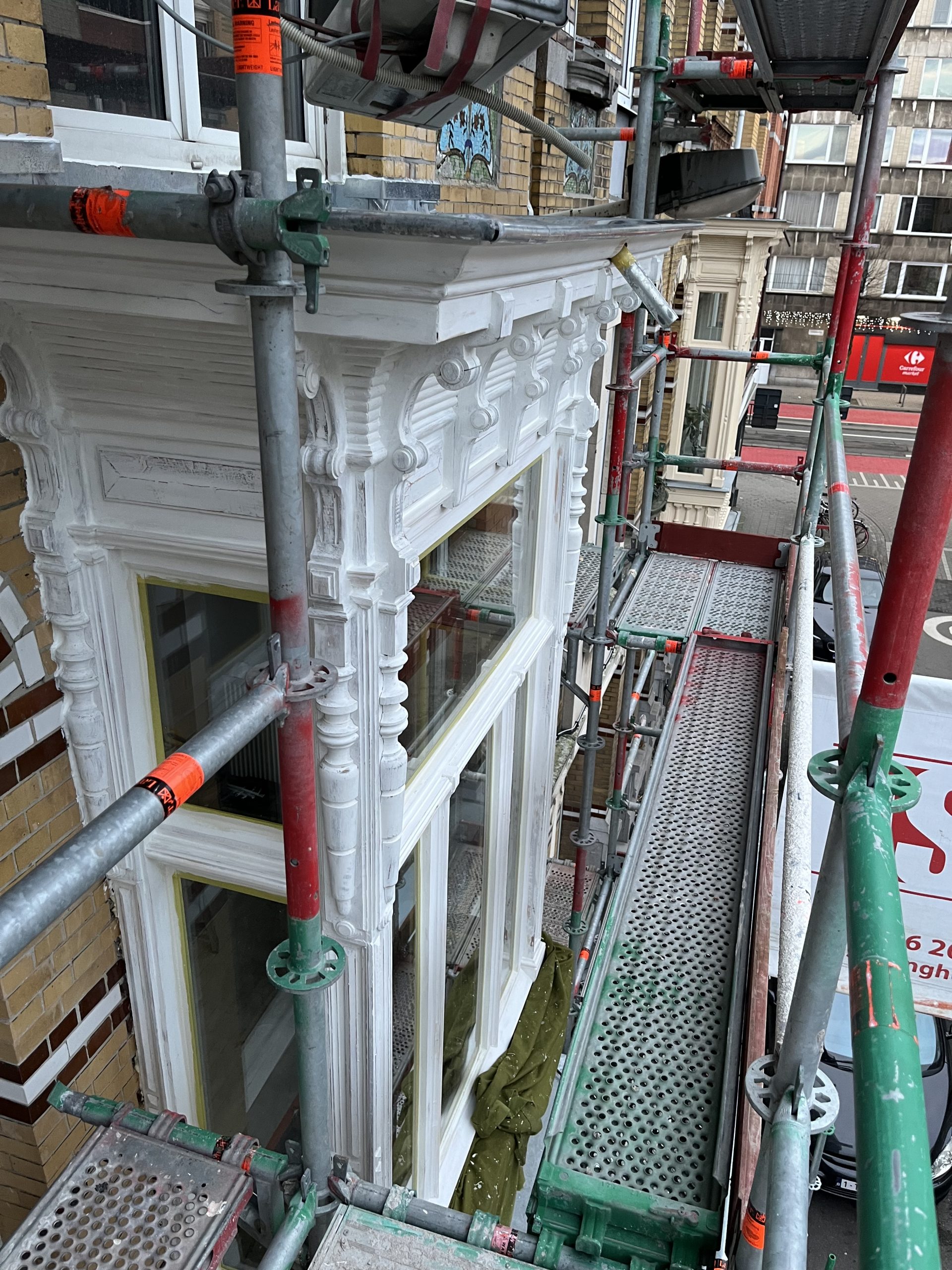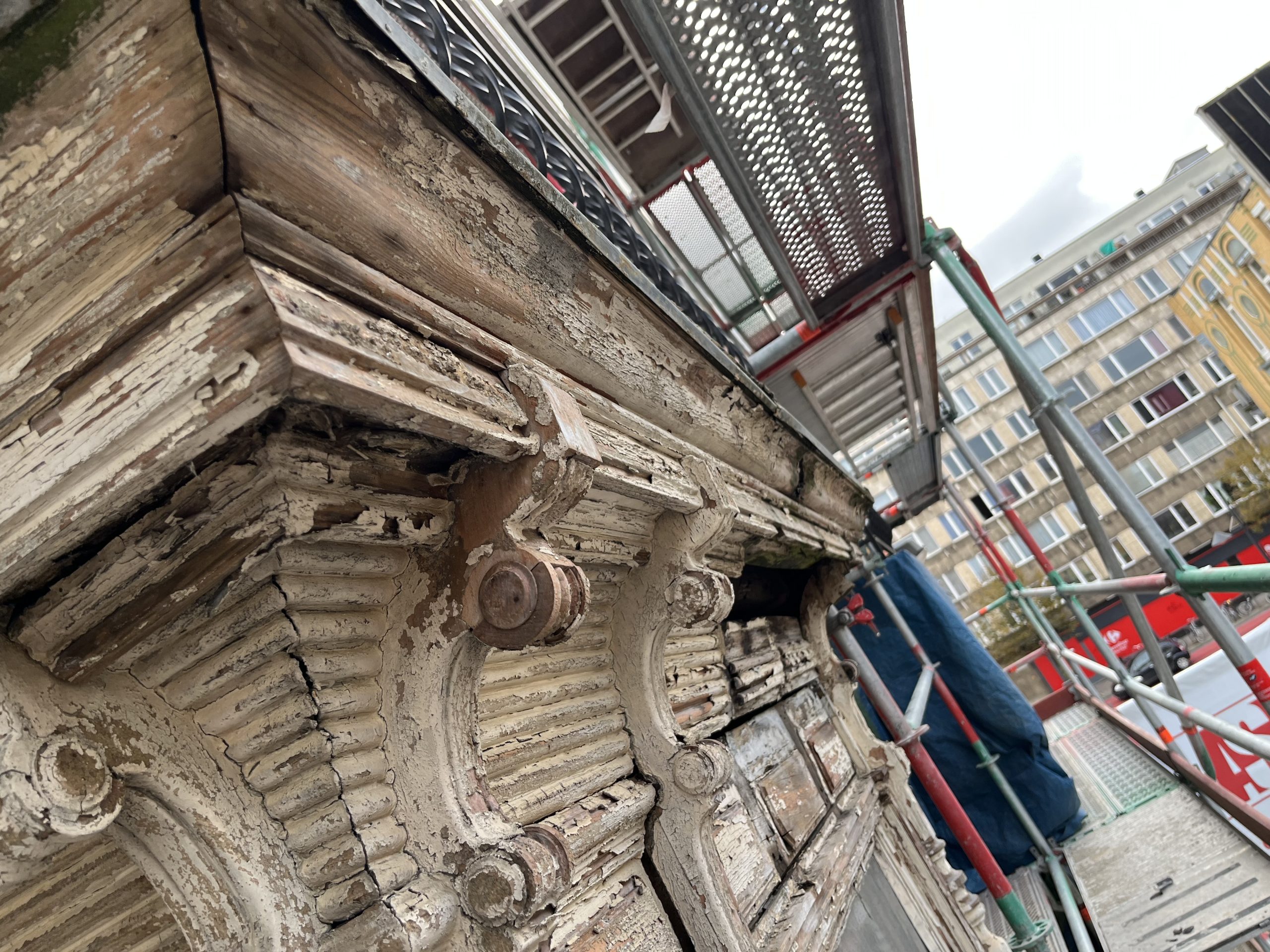 Wooden elements are restored with respect for the original profiles, proportions and joinery. Repairs focus on durability, authenticity and seamless integration into the existing facade. Work typically includes repair and partial replacements of window frames, corniches and decorative details, using traditional profiles and techniques. Where necessary, restoration is carried out in collaboration with specialized craftsmen to ensure structural soundness and long-term preservation, without erasing the character of the original woodwork.